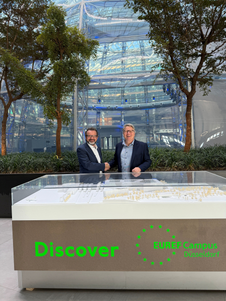 Niederlassungsleiter Burkhard Rieche und EUREF-Standortleiter Jörg Philippi-Gerle freuen sich auf die Zusammenarbeit.